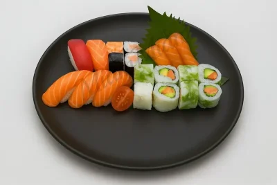 Super endroit avec la déco soignée✨🍣 Cuisine japonaise raffinée🍃. Le repas débute avec un petit amuse bouche offert : un roll de chef. Nous avons sélectionné un plateau pour 2 personnes avec en entrée une soupe au choix classique (miso) ou piquante✅, et les brochettes yakitori de poulet (ultra fondantes). Pour enchaîner avec un super plateau de 60 pièces - un vrai régale pour les papilles. Le poisson est ultra frais. Tout était excellent, même les plus basiques makis à l'avocat et fromage. Et à la fin on nous a offert un digestif au choix. Merci à toute l'équipe pour ce super moment 🙏🏻✨ Superbe adresse. On recommande !!!